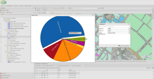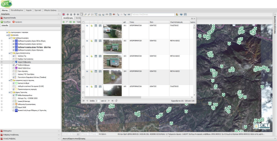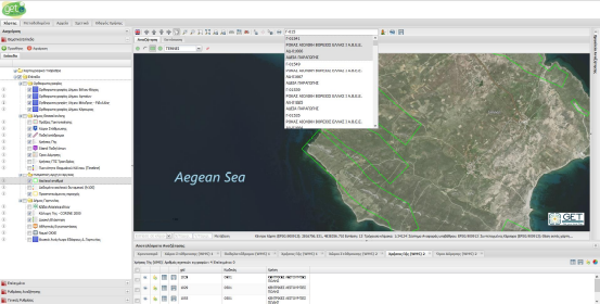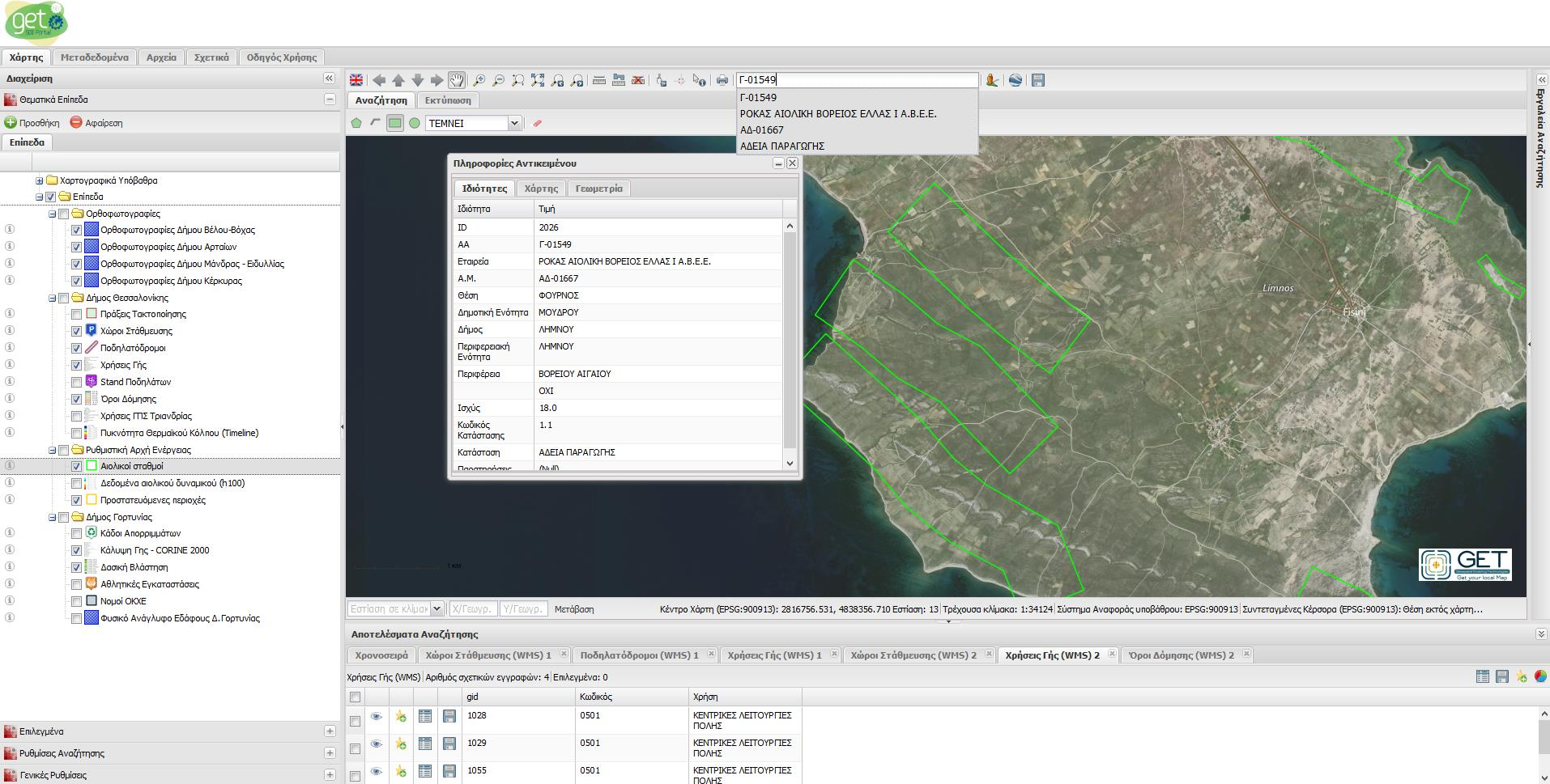 Επιλέγοντας πάνω σε μία από τις ευρεθείσες εγγραφές, ο χάρτης μετακινείται αυτόματα στο σημείο της οντότητας όπως επίσης και ανοίγει αυτόματα η καρτέλα πληροφοριών του επιλεγμένου αντικειμένου.
