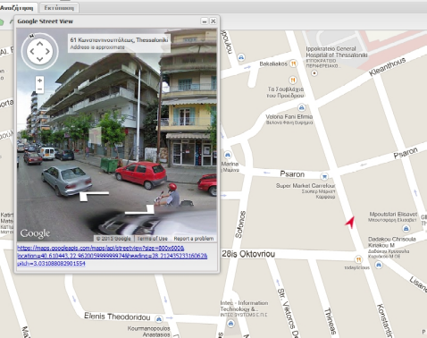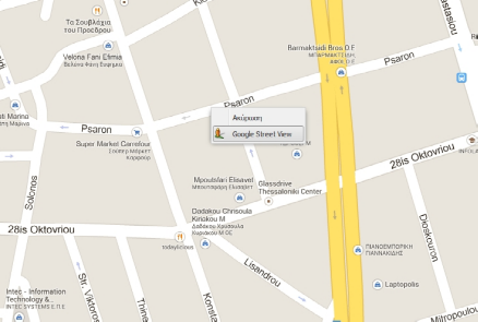 Το άρθρωμα «Google Street View» προσφέρει τη δυνατότητα της θέασης σε ένα σημείο του χάρτη, μέσω του Google Street View.