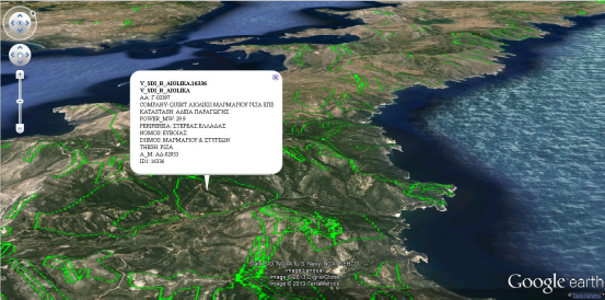 Τα επίπεδα που υποστηρίζουν την εξαγωγή τους ως KML, θα αρχίσουν να φορτώνονται αυτόματα στο περιβάλλον του Google Earth.
