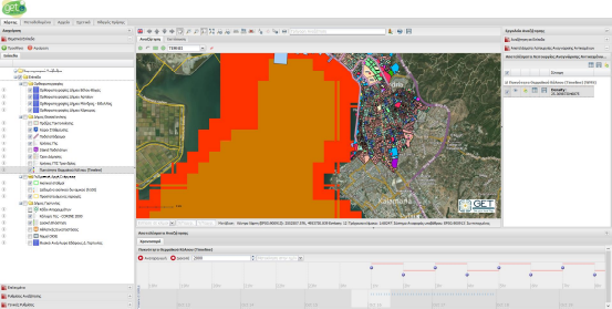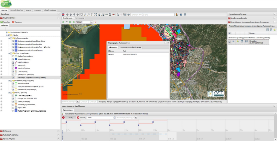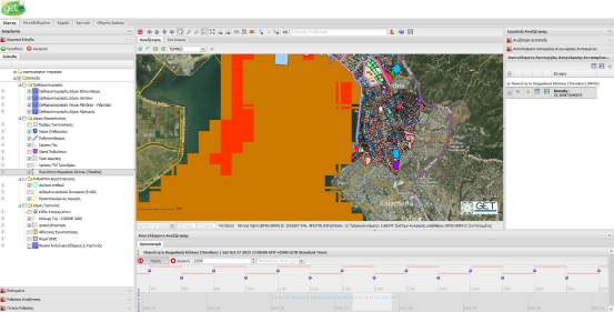 Η Υποδομή Γεωχωρικών Πληροφοριών, εμφανίζει σε δυναμική χρονοσειρά, όλες τις στιγμές του χρόνου που αντλούνται από επίπεδα WMS-T σε ένα εύχρηστο στοιχείο ελέγχου.