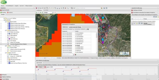 Καθώς θα μετακινείται η χρονοσειρά σε κάθε διακριτή χρονική στιγμή, το WMS-T επίπεδο, ανανεώνεται αυτόματα, ανανεώνοντας τη γραφική του απεικόνιση με δεδομένα την τρέχουσα χρονική στιγμή.
