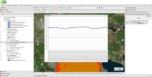 Επιπλέον στη καρτέλα «Πληροφορίες Αντικειμένου», για WMS-T επίπεδα, εμφανίζεται μία νέα καρτέλα «Συγκεντρωτικός Πίνακας», απ’ όπου ο χρήστης μπορεί να αντλήσει τις τιμές των ιδιοτήτων ανά εύρος ημερομηνιών.